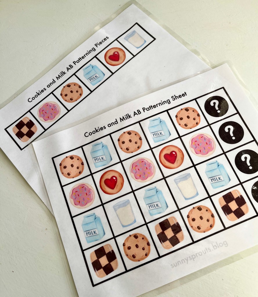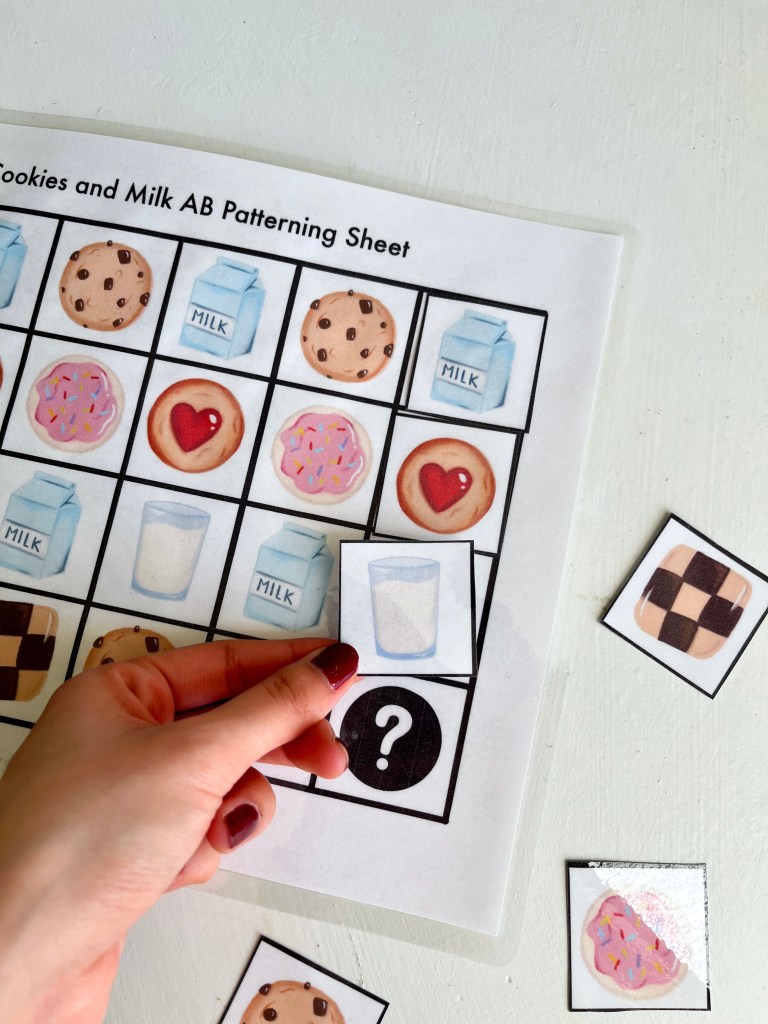 Help your child or students learn foundational patterning concepts with this fun Cookies and Milk AB Patterning sheet!